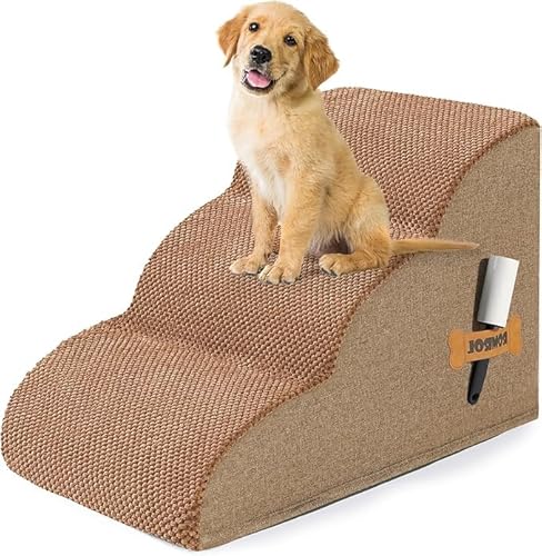MASTERTOP Escaliers pour Chiens à 3 Marches en Mousse Haute Densité, Échelle Large pour Animaux de Compagnie, Escaliers Chien Antidérapant avec Housse Amovible pour Monter Canapé et Lit (Marron)