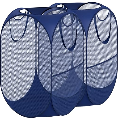 Simple Houseware Paquet de 2 – Panier à Linge escamotable en Maille SimpleHouseware avec Poche latérale, Bleu foncé