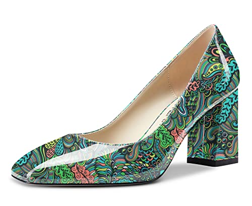 Elashe Femme Escarpins Talon Bloc Bout Carré Pumps Chunky Mary Jane Petit Talon Chaussure Beige EU38