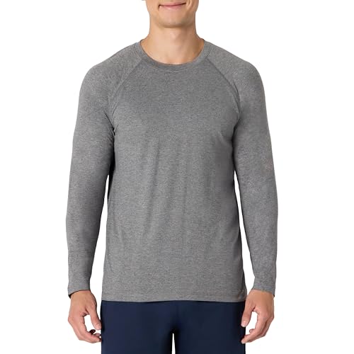 Amazon Essentials T-Shirt à Manches Longues pour la Gym, Tissu Technique Doux et Léger, Coupe Athlétique Homme, Gris Teinture Spatiale, S