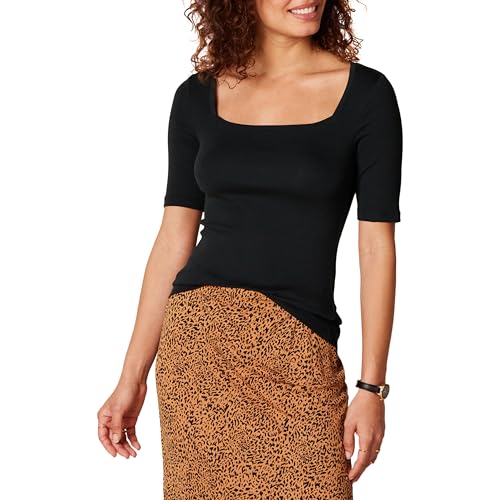 Amazon Essentials T-Shirt Ajusté à Manches Mi-Longues et Col Carré Femme, Noir, M