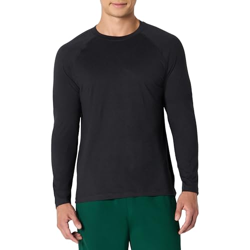 Amazon Essentials T-Shirt à Manches Longues pour la Gym, Tissu Technique Doux et Léger, Coupe Athlétique Homme, Noir Teinture Spatiale, L