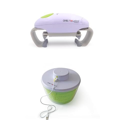 ONE TOUCH Kit de Cuisine Sans Effort - Pack de 2 : Ouvre-Boîte Automatique (KC12) + Essoreuse à Salade Automatique (KC128)