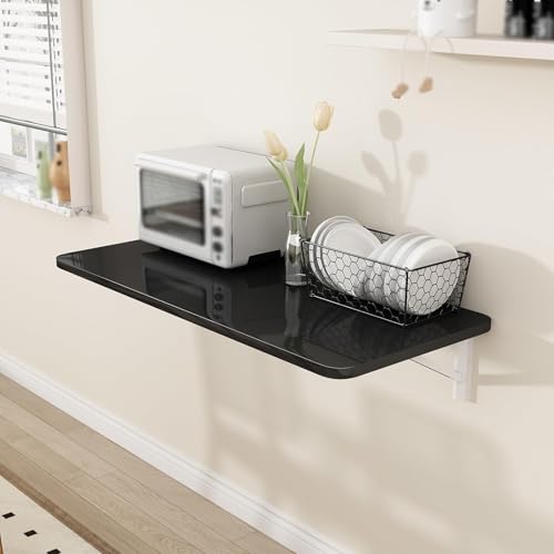 Table Pliante Murale - Bureau et établi Pliables Gain de Place pour Petits espaces (Maison, Bureau, Cuisine, Salle à Manger, Coin Lecture) - Noir 120 x 50 cm