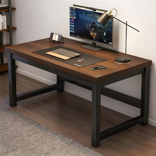 Bureau d'ordinateur élégant Blanc avec Base à tréteaux en Acier, pour la Maison, sans Chaise, Table de Bureau, Chambre à Coucher, Bureau, Long établi de Jeu, Marron, 120 cm de Long