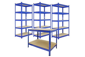 3 x Etagères 90 cm, 1 Etabli 120cm - Bleu & Maillet - Q-Rax
