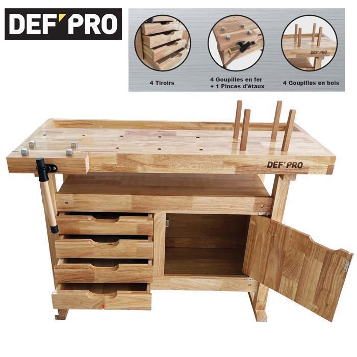 Etabli de menuisier en bois Outifrance 1 porte 3 tiroirs L.120 x l.50 x H.82 cm