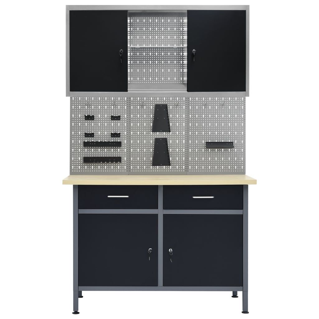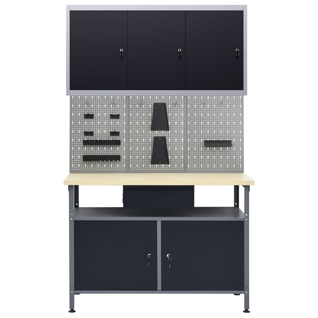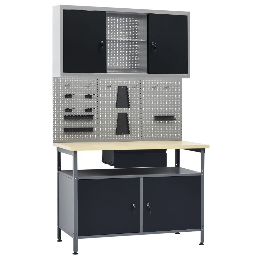 Etabli 120 cm et 3 panneaux muraux et 1 armoire atelier table de travail gris noir Helloshop26 02_0003663