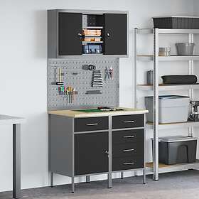 vidaXL 3-delars arbetsbänksset svart och grå i trä och stål 3321370