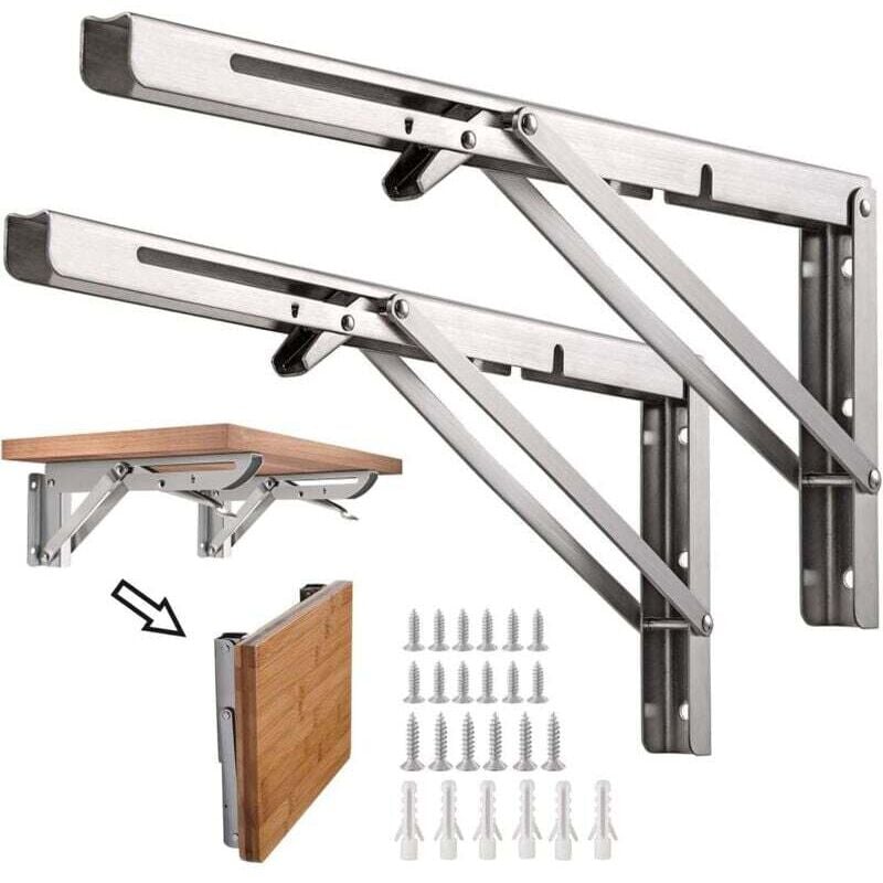 Lot de 2 Lourds Support Console Pliable Rétractable Pour Garage établi, Support d' Étagères Pliable, 12" / 300mm Acier Inoxydable Equerre