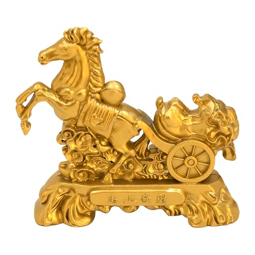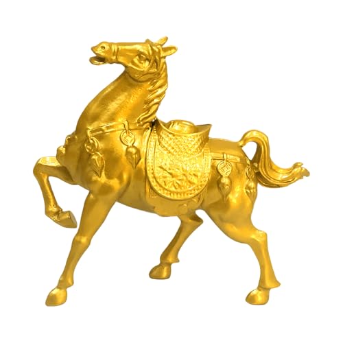 Sculpture de cheval – Figurine d'animal doré en métal pour la richesse – Décoration de bureau – À poser sur une étagère, une cheminée, une bibliothèque, une table, une voiture, un Nouvel An