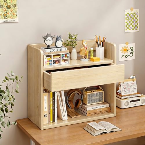 Étagère Bureau À Poser sur Bureau Rangement Etagere de Bureau, étagère de Bibliothèque, Organisateur de Table, Étagère de Rangement(White,50cm*24cm*60cm)