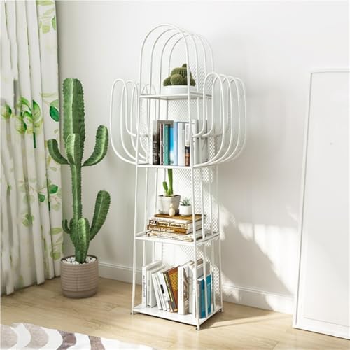 Flottante Étagères suspendues décoratives bibliothèque échelle autoportante à 4 Niveaux Cactus en Fer étagères de Rangement décoration Moderne Salon étagère d'angle Chambre(Blanche