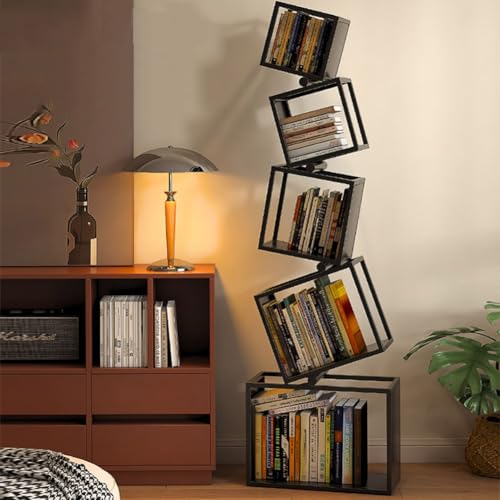 Bibliothèque Etagere,unique à 5 niveaux de 72 po de hauteur,bibliothèques géométriques modernes,étagère à livres en métal cool bibliothèque d'angle pour chambre à coucher,salon,bureau à domicile