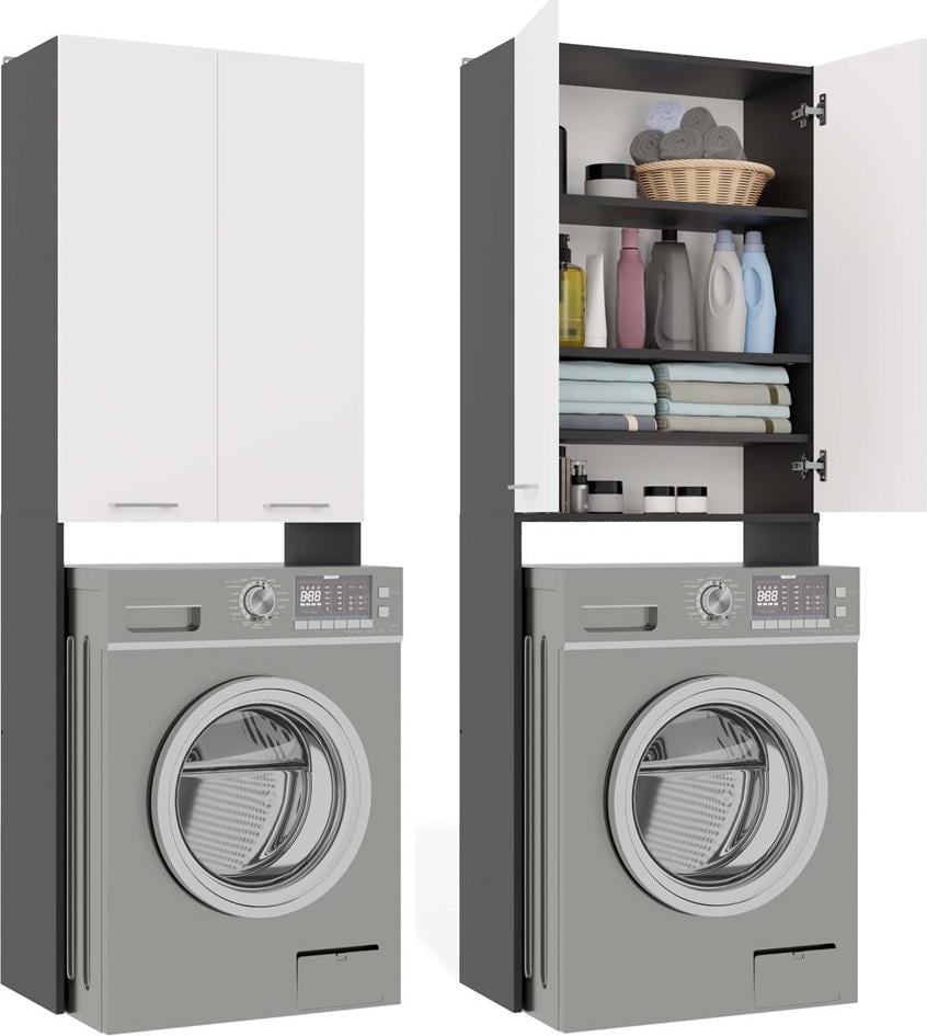 Étagère de salle de bain au-dessus de la machine à laver blanche cappuccino haute brillance 2 portes