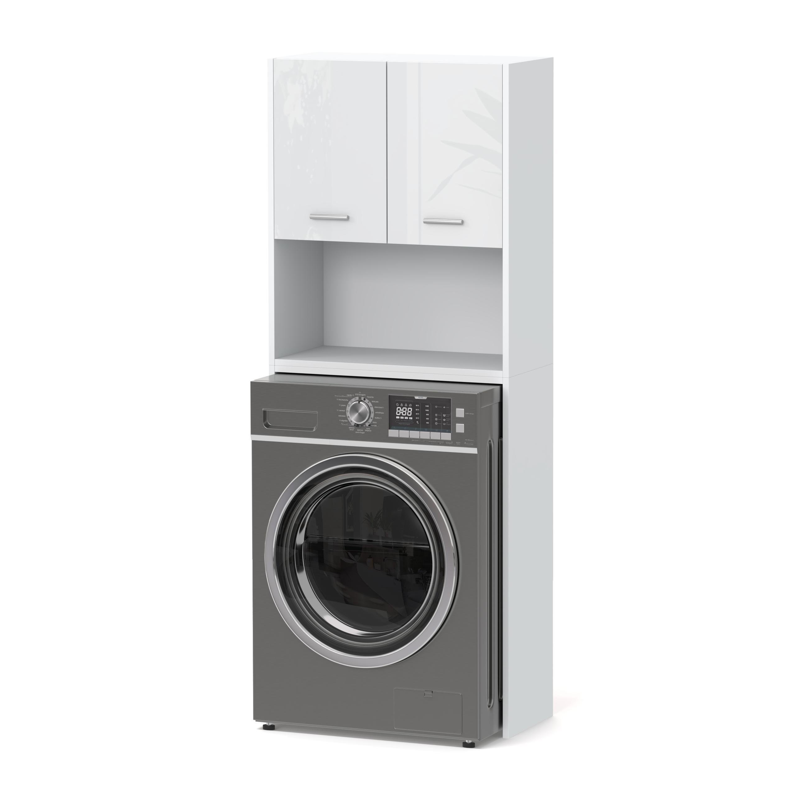 Étagère de salle de bain au-dessus de la machine à laver blanche cappuccino haute brillance 2 portes