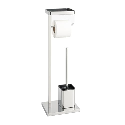 Relaxdays Ensemble WC Autonome en Acier Inoxydable avec étagère et Porte-Rouleau, 66 x 26 x 13 cm, Argent