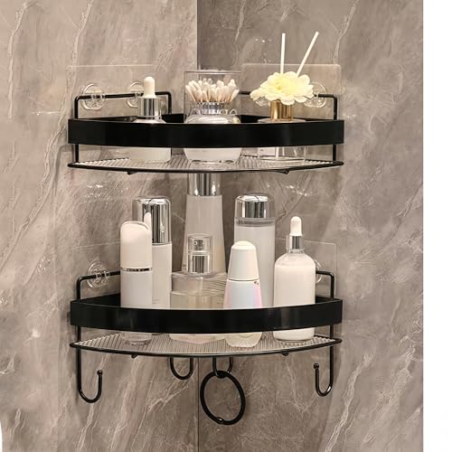 Menbyci Lot de 2 étagères de douche d'angle, étagère de bain adhésive avec crochets, en acier inoxydable 304 résistant à la rouille pour accessoires de baignoire, étagère de rangement pour shampooing,