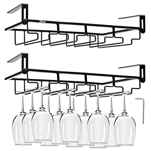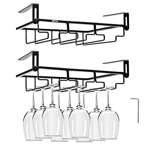 AUHOKY Lot de 2 porte-verres à vin réglables sous armoire, sans perforation, 4 rangées, support en métal à suspendre pour verres à vin, étagère de cuisine, bar (4 rangées, noir)