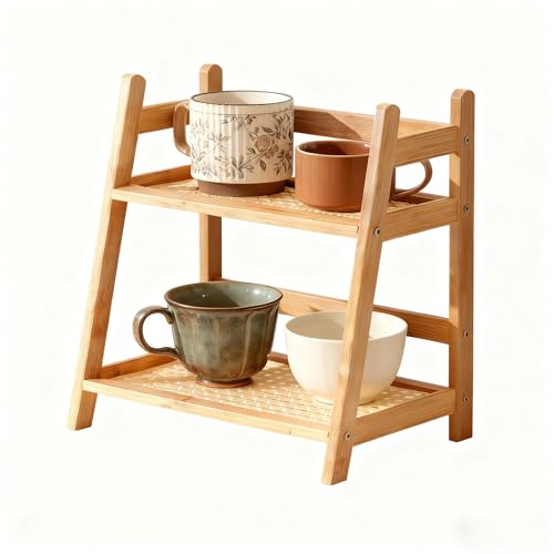 Starvortex 2-Tier Rangement Cafe, Etagere Cuisine Rangement en Bambou Naturel, Etagere Rangement à Épices en Bois, Organisateur Cuisine pour Ranger la Vaisselle Tasses Boîtes, Organisateur en Osier