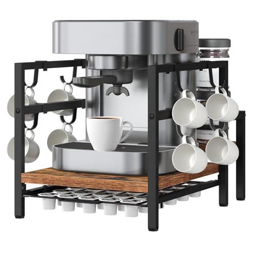 HOOBRO Étagère à Café, Tiroir à Capsules pour K-Cups, Support de Machine à Café avec crochets en S, pour capsule, sirop, tasse, mug, Marron Rustique et Noir EBF01CR01