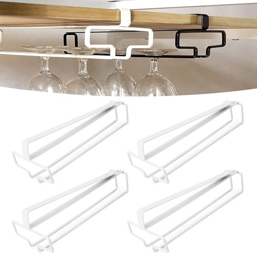 SAMSYOKI 4 Pièces Porte Verre à Vin Suspendu Support de Verre à Vin Sous Armoire Porte-Verres à Pied Suspendu Sans Perçage Métal Accroche-verres Pour étagère pour Cuisine Café Bar Restaurant (Blanc)