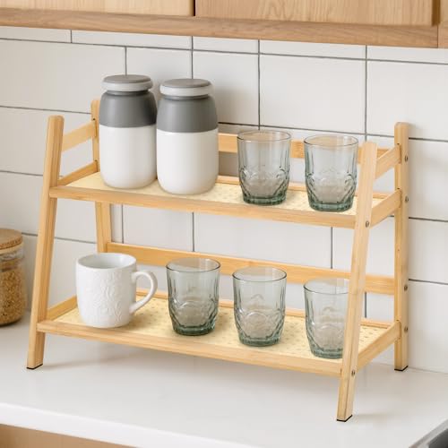 Starvortex 2-Tier Rangement Cafe, Etagere Cuisine Rangement en Bambou Naturel, Etagere Rangement à Épices en Bois, Organisateur Cuisine pour Ranger la Vaisselle Tasses Boîtes, Organisateur en Osier