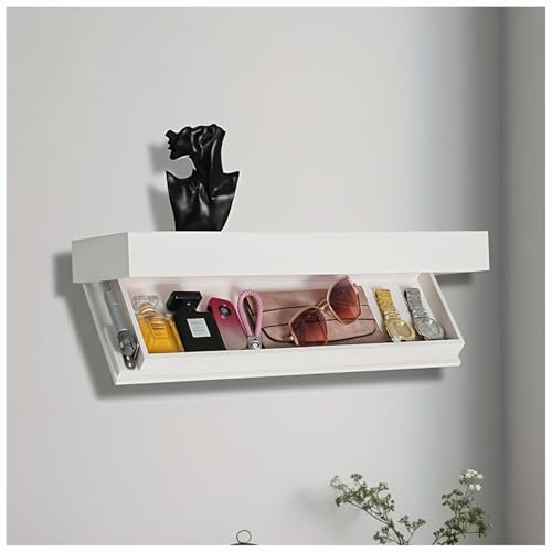 Étagères avec Protection visuelle et Compartiments, cellier Mural Minimaliste et étagère de Rangement, étagères flottantes discrètes avec tiroirs,Blanc,53 * 17.5 * 5cm
