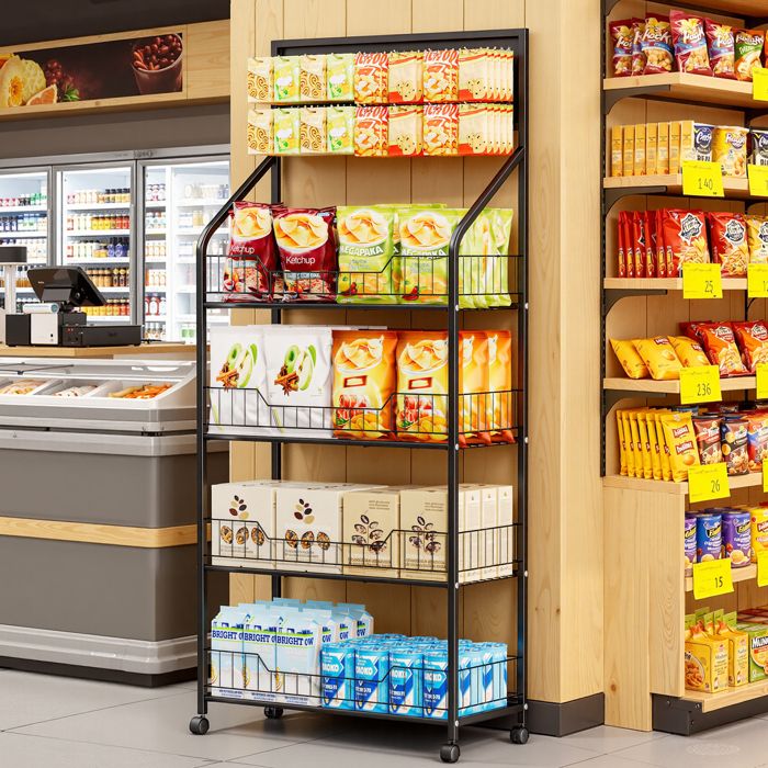 Étagère de Rangement Cuisine Étagère de présentation pour snacks 4 Niveaux sur Roulettes pour Cuisine/Cellier 60*27*140cm