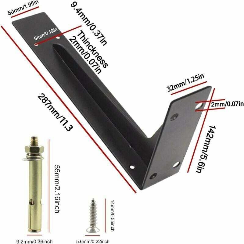 Pack de de 2 Equerre Etagere 290mm, XU, Équerre Charge Lourde, Murale Supports Étagère, Charges Lourdes Supports Equerre avec Vis, Noir 150KG/330lbs