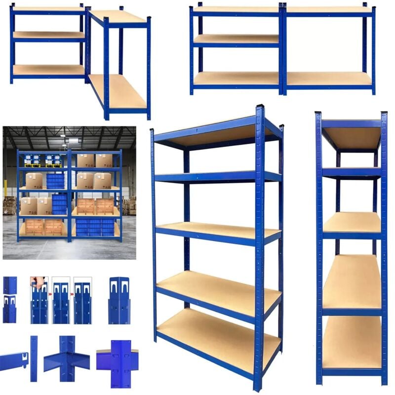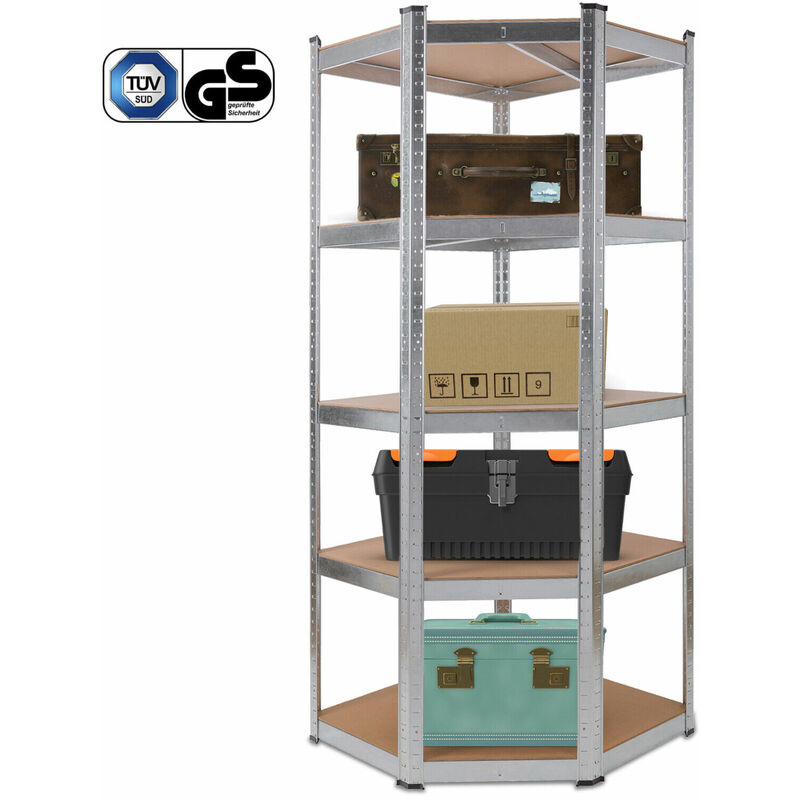 Arebos – Étagère d'angle charges lourdes 180x70x70 cm – Acier zingué – 5 niveaux – Charge max 875 kg – Panneaux MDF ignifuges
