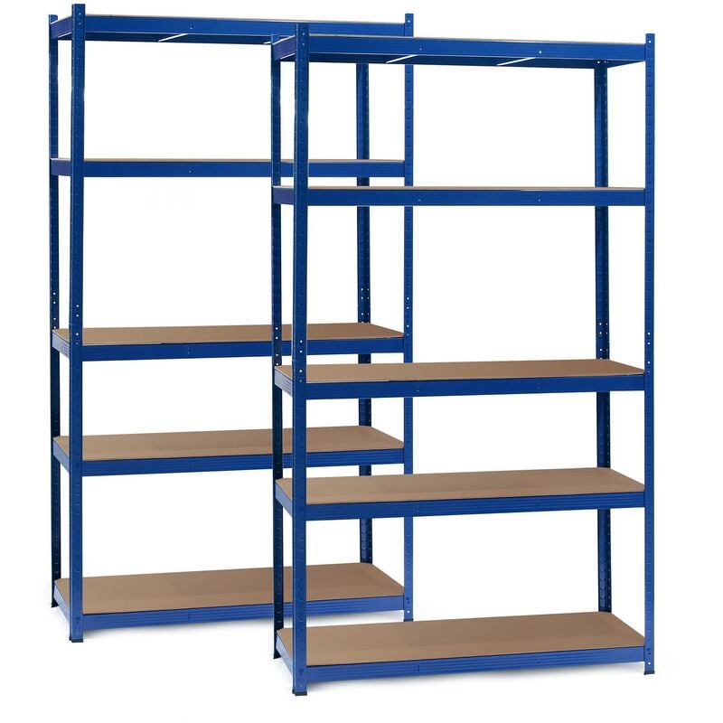 Jeu de 2x Étagère Charges lourdes - 100 x 50 x 200 cm / 200 kg/niveau - en Acier galvanisé - couleur Bleue - Rayon de stockage emboîtable avec 5