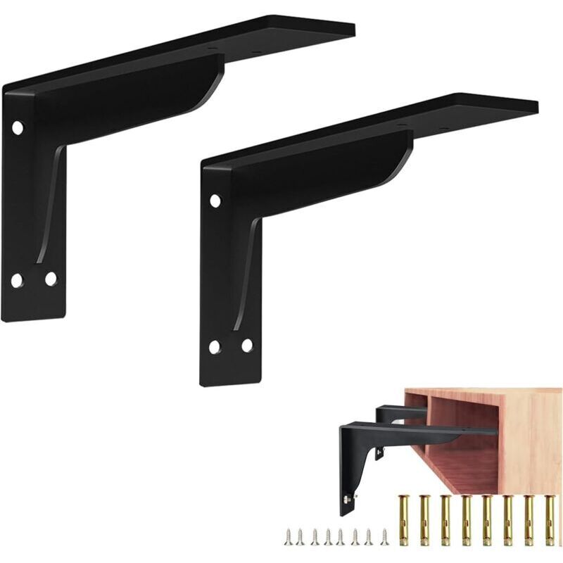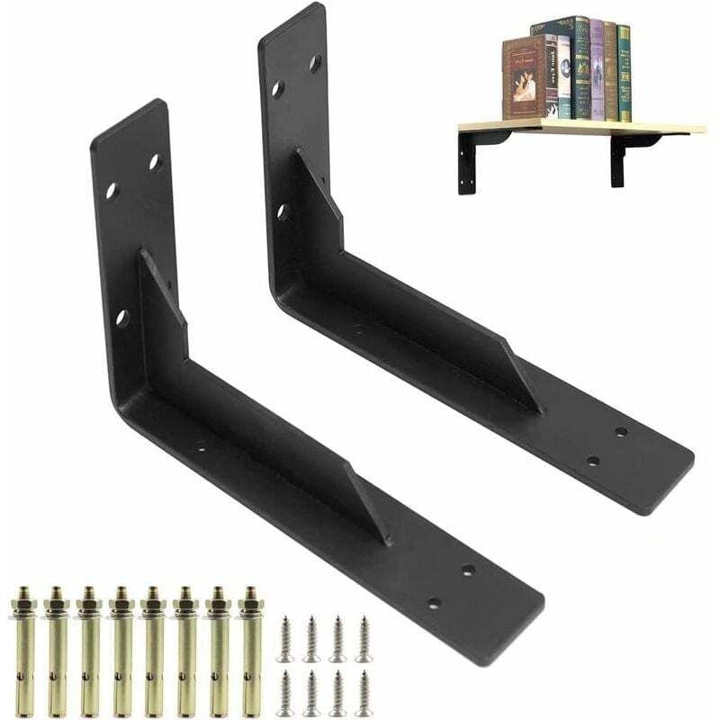 2 pièces Support d'étagère Support de 10 cm, Équerre d'étagère pour charges lourdes, capacité de charge 75 kg, noir