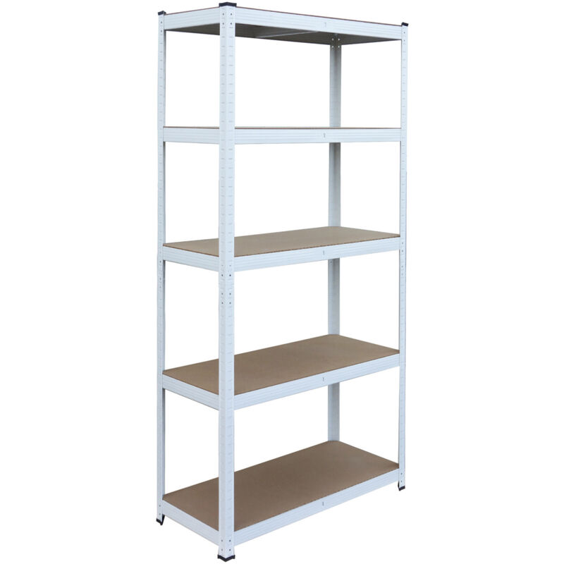 Étagère pour charges lourdes Relaxdays, HxLxP 180x100x30 cm, 875 kg, 5 niveaux, cave/garage, à emboîter, blanc/marron