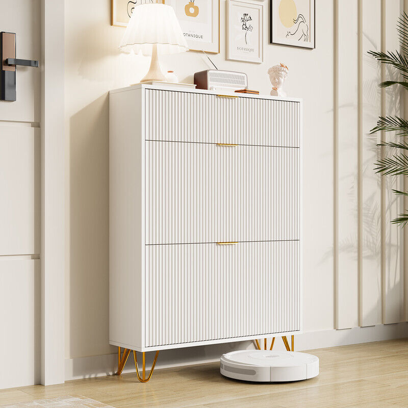 Meuble à Chaussures avec 2 tiroirs rabattables-Armoire à chaussures avec étagère réglable-Rangement à Chaussure en bois-12à
