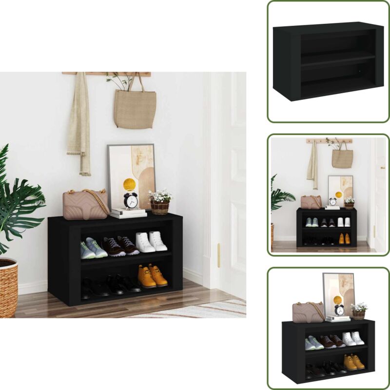 Tagère à chaussures Noir 75x35x45 cm Bois d'ingénierie - Etagere à Chaussures - Rangement Chaussures - Meubles Entrée - Meuble Chaussure