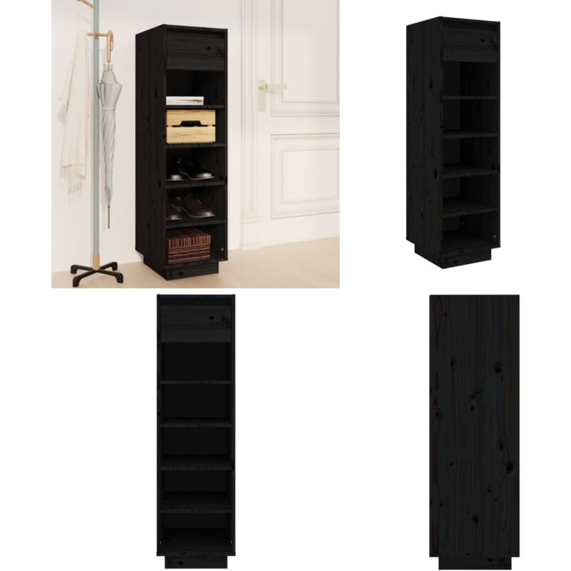 Armoire à chaussures noir 30x34x105 cm bois de pin massif - Meuble Chaussure - Étagère Chaussure - Rangement Chaussures - Armoire à Chaussures