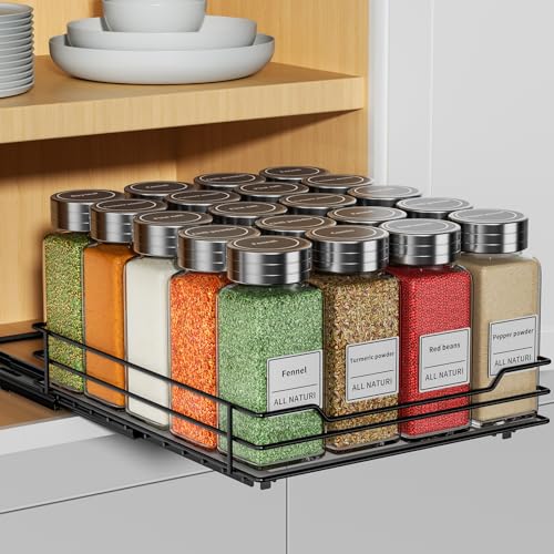 RCHYFEED Étagère à épices coulissante pour armoire, organiseur à épices coulissant pour l'intérieur des armoires, organisation à épices robuste pour cuisine et garde-manger, assaisonnement, sauces (1