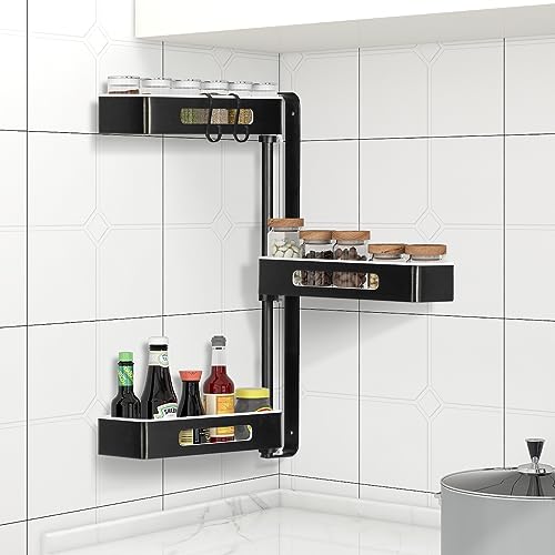 ABOOFAN Étagère à Épices Cuisine Murale En Fer Noir, Organisateur De Condiments Structure Robuste, Sans Perçage, Rangement Polyvalent Cuisine Et Salle De Bain, Support Mural Unique