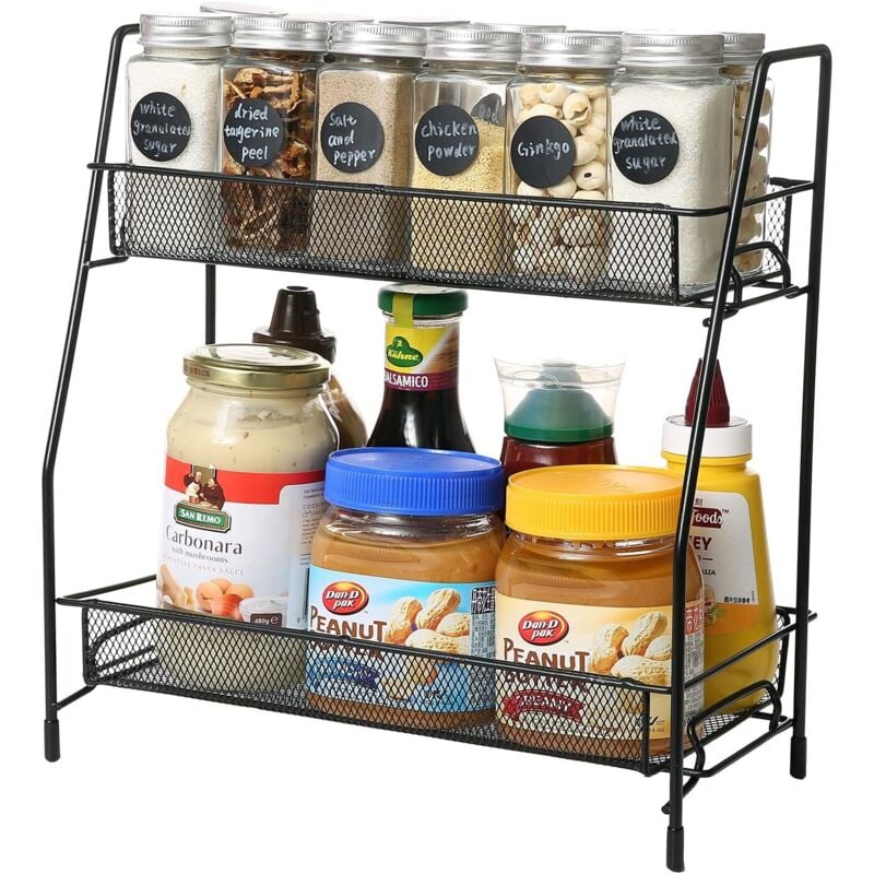 Rangement sous Evier Cuisine Coulissant 2 Niveaux Etagere Epices Cuisine Porte-Épices sous Étagère en Métal Rangement Épices Cuisine 37.5 26.5cm pour
