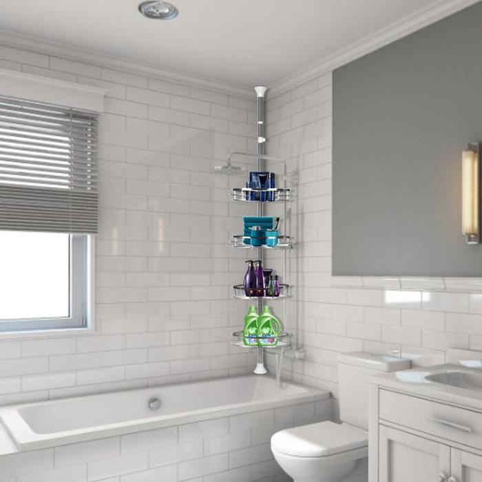 Royalbell Etagère d´angle • télescopique • 4 tablettes • 110-280 x 31 x 22cm Salle de bain douche étagère réglable