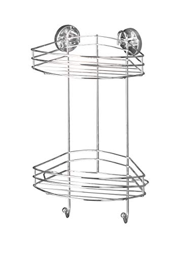WENKO Turbo-Loc® étagère d'angle à 2 niveaux - fixer sans percer, Acier, 26.5 x 33 x 20 cm, Chromé