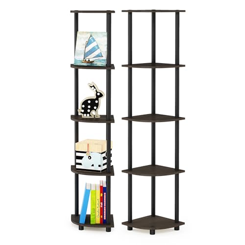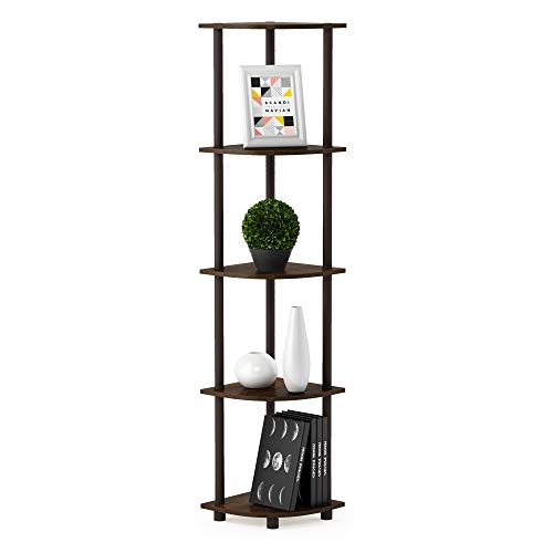 Furinno Turn Étagère Polyvalente à 5 Niveaux pour Présentoir d'Angle avec Tubes Classiques, Expresso, Bois, Espresso/Noir, One Size