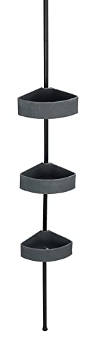 WENKO Étagère d'angle télescopique Villata, barre télescopique à clipser en inox, trois paniers imitation pierre naturelle en polyrésine, rangement salle de bain, extensible jusqu'à 275 cm, gris/noir