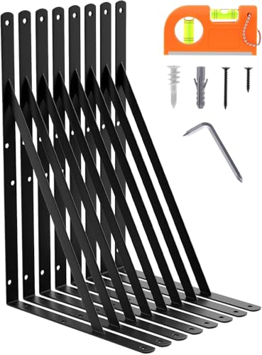 LEOPO Lot de 8 supports d'étagère de 45,7 cm pour étagère flottante à faire soi-même, supports en L robustes, équerre d'angle triangulaire à 90 degrés
