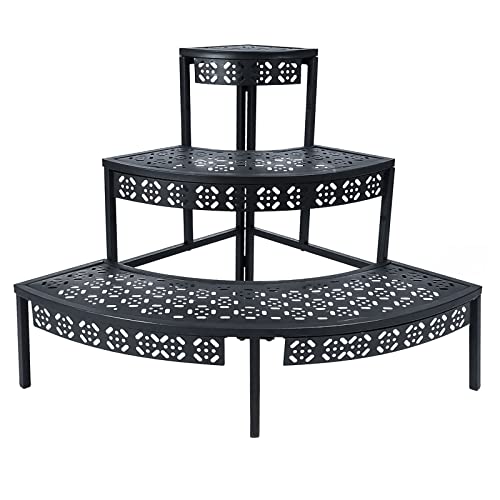 aboxoo Étagère d'angle à 3 niveaux pour pots de fleurs, étagère d'angle en métal pour intérieur et extérieur (noir, demi-cercle)