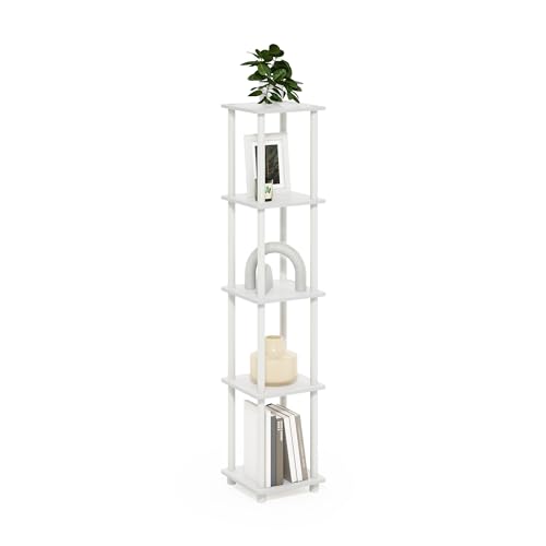 Furinno Turn-N-Tube Étagère d'angle carrée à 5 Niveaux, Blanc/Blanc, 29.46 (D) x 29.46 (W) x 146.56 (H) cm.
