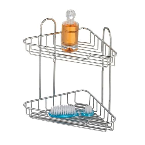 axentia Étagère de Douche Murale Escala, Étagère pour Salle de Bains en Fer Chromé, Étagère d'angle Pratique à 2 Niveaux, env. 20 x 25 x 20 cm, Argenté
