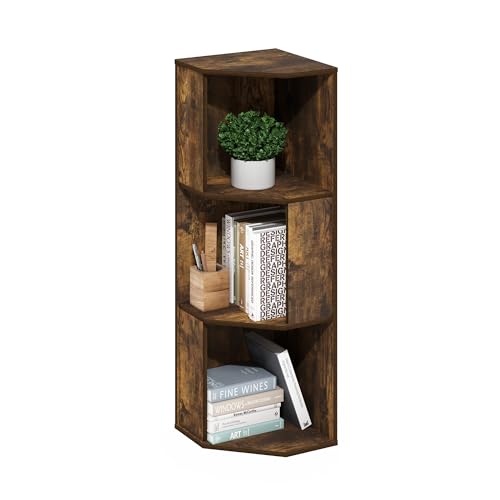 Furinno ECON, Étagère d'angle, Étagère d'angle À 3 Niveaux, Rangement, Présentoir Bibliothèque, Rangement, Salon/Bureau, Expresso