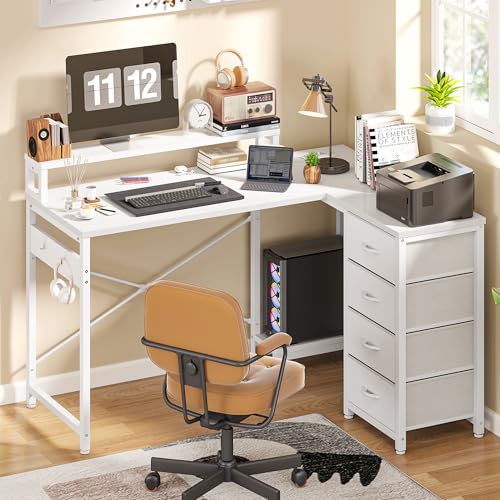 YITAHOME Bureau d'angle Multifonction avec Étagère de Rangement DIY à 4 Niveaux, 2 Ports USB et Prises Électriques pour Domicile, Étude, Salon - 130x100x75cm, Blanc